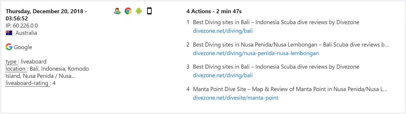 Understand the full behavioural patterns of any individual user from any page on your website you want to analyse. Also see the path that led them to take action, where they may have got lost, and how visitors engage with your business over time.