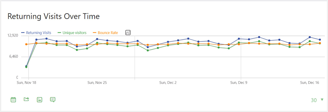 This way you can see if there were increases or decreases for visits, actions, bounces etc. at any important time and discover what days had an impact on your business. This lets you be proactive when a negative trend occurs or you can capitialise when you see a positive response from your users.
