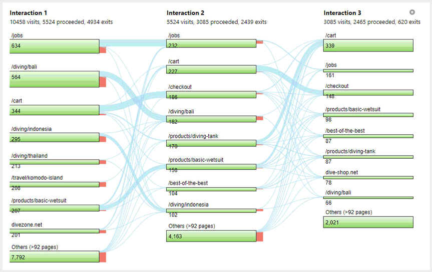 This helps you identify clearly where users may be getting distracted to click away and where other pages are creating opportunity to click-through to conversion.
