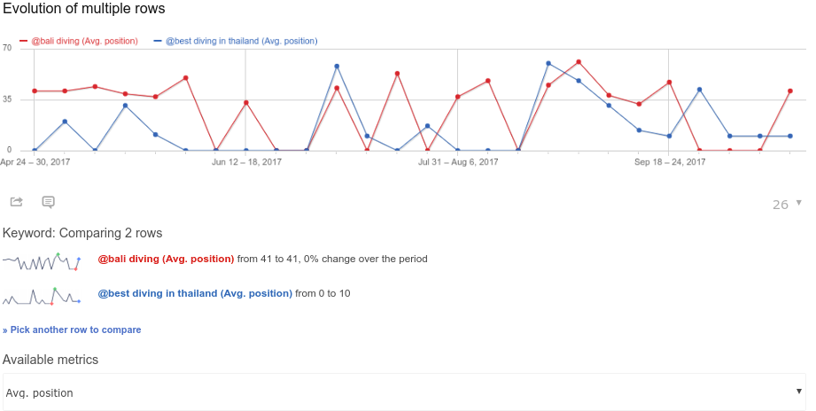 it also gives you the possibility to compare the performances of several keywords in order to see how your website is performing as a whole: