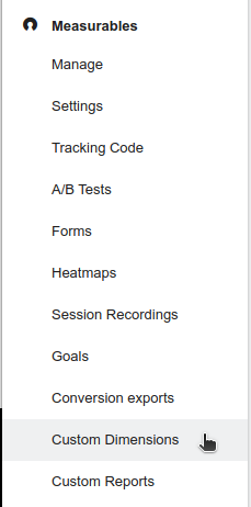 To create a custom dimension in Matomo, go to Administration > Measurables > Custom Dimensions.