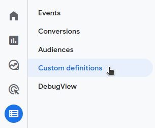 In GA4, you find custom dimensions in the Configure navigation menu option.