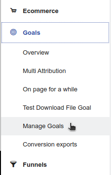 GA3 had goals, but GA4 uses conversion events instead of goals. Matomo is more like GA3 in that it uses goals to track conversions. You can set those up by selecting the Goals option from the main navigation bar on the left: