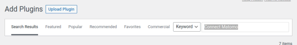 Install the Connect Matomo (WP-Matomo) plugin in WordPress