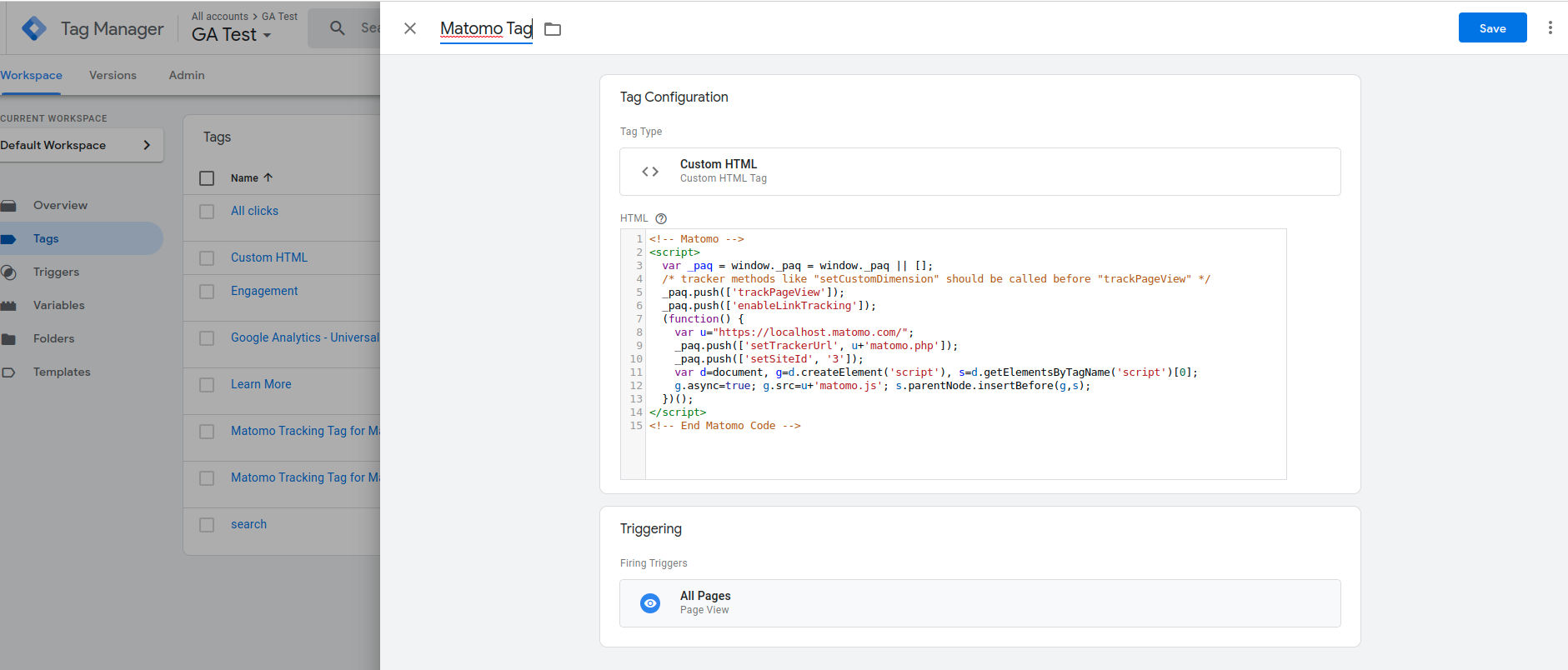 - Select “All Pages” to fire the Matomo tracking tag on all of your pages.