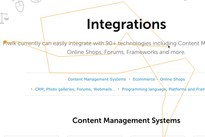 Below the video timeline you will see the screen the same way the recorded visitor did. The video will show the mouse pointer and mouse movement path. Circles will show you where a user clicked. If the user scrolled, resized the window, if a pop-up appeared, or made changes in a form, you will see the same actions replayed in this video.