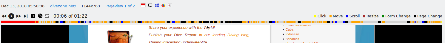 Note that when playing a recorder user session you can use keyboard shortcuts to conveniently pause the video, jump a few seconds backwards or forwards, replay the video if it is finished, or play the next or previous page view for the visitor.