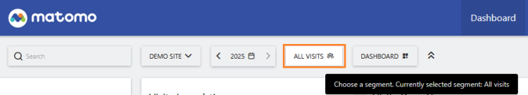 - In the Matomo dashboard, open the segment selector.