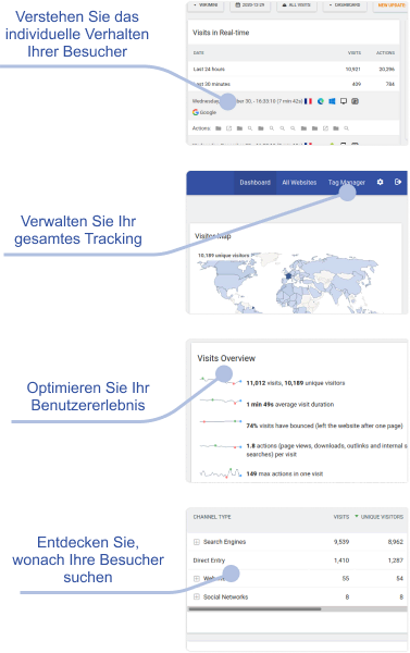Optimieren Sie Ihre Website und erleichtern Sie die Entscheidungsfindung mit einer unabhängigen, ethischen Analyseplattform. Mit Matomo gehören Ihnen Ihre Daten, Sie können Berichte personalisieren und Ihre historischen Daten importieren.